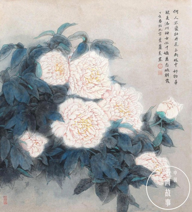 画中题诗:“何人不爱牡丹花,占断城中好物华。疑是洛川神女作,千娇万态破朝霞。”整诗把牡丹的富丽堂皇与风流潇洒表现的淋漓尽致,不愧被誉为“花中之王”,诗句表现出画家对牡丹的喜爱与赞美之情。
