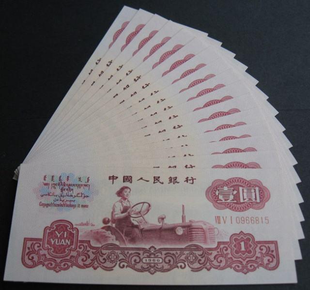 在不少人心目中,面值小的纸币应该收藏价值不高,但是对于收藏行家来说,面值并不影响收藏价格,如1960年1 元人民币就是典型的例子,作为第三套人民币的其中一员,从我国三年经济特困时期诞生并陪中国人度过了近38 年的时间,见证了中国的风风雨雨,收藏价值也从推出流通市场之后还是越发显露出现。1960年1元人民币在图案设计上采用的是女拖拉手的形象,这不仅仅代表着我国的农工业发展情况,更是显示了中国正在崛起的精神面貌,所以这一张纸币成为第三套人民币中最具潜力的纸币之一,市场价格也在不断攀升之中,现在古币水印1元单枚价格已高达800 元左右。下面我们一起来了解下吧!