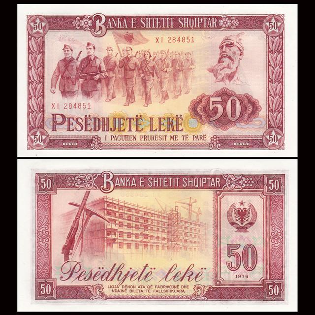 中国援助印刷,阿尔巴尼亚1976年版,50列克纸币。