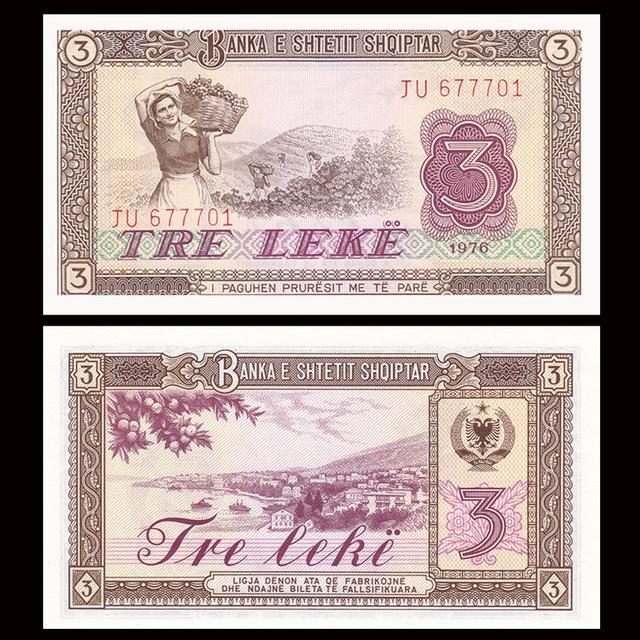 中国援助印刷,阿尔巴尼亚1976年版,3列克纸币。