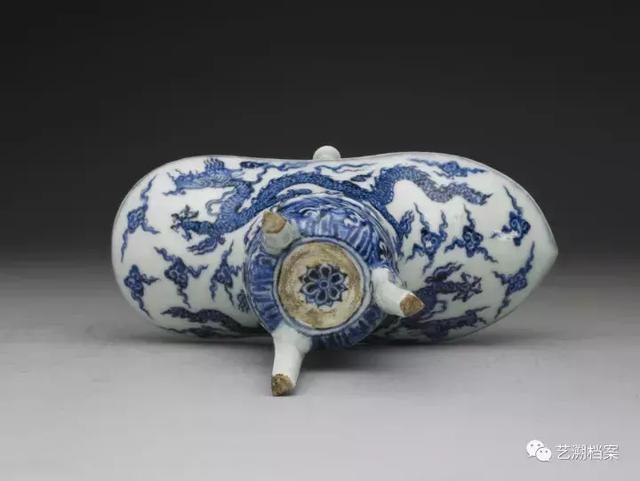 永乐、宣德年间,时有青花大型器如天球瓶、扁壶等作品的烧制。青花瓷器是以含氧化钴的矿物为颜料,在瓷器坯体上描绘纹饰,施一层透明釉后,经约摄氏一千两百度左右高温烧造而成的作品。明代永乐、宣德时期的青花发色浓艳,并且带有渗青铁锈斑点,形成独特鲜明的风格,且成为清朝早期制作永乐宣德青花仿古瓷时的模仿重点。