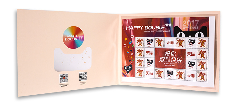 中集邮参与本次双11活动,也为天猫平台及其消费者准备了《祝你双十一快乐》定制款邮折,对于延续多年的双11天猫线上营销而言具有特殊的纪念意义。与此同时,为了让更多的消费者了解邮票的内层文化及收藏价值,11月10日中集邮特别邀请邮票专家通过天猫直播为大家揭秘参与活动的不同珍贵票种。