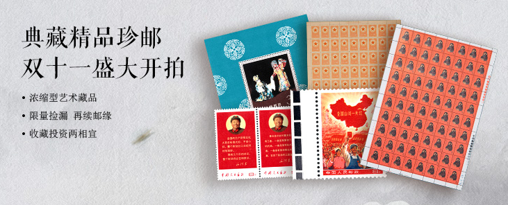 中国集邮总公司(以下简称“中集邮”)联合天猫双11打造“2017集邮爱好者狂欢盛宴”,即日起在中国集邮总公司天猫旗舰店不仅有多种不同主题邮票的珍藏册、收藏品以及贵金属、经典外票和集邮用品齐聚亮相,而且还有“典藏老票拍卖专场”以及天猫双11定制邮票发售。本届双11中集邮活动中,涵盖的邮票种类时间跨度近60年,其中稀有票种层出不穷,配合包括转盘抽奖、整点秒杀、满减、满赠、满额包邮等多种形式优惠活动,共同演绎2017天猫双11的“集邮狂欢曲”。